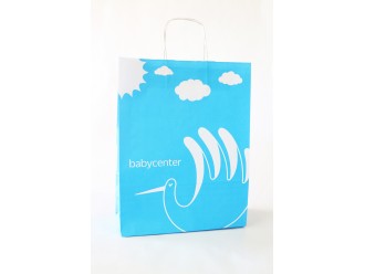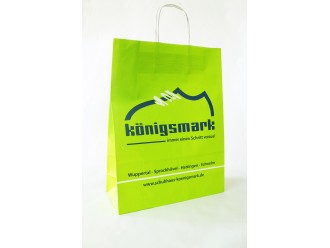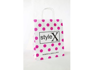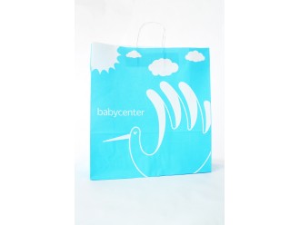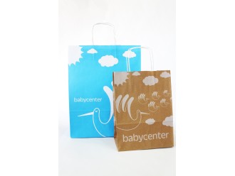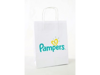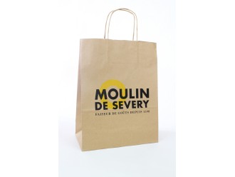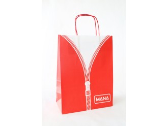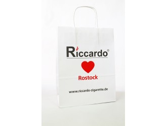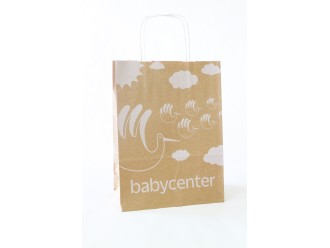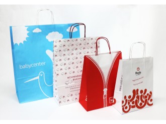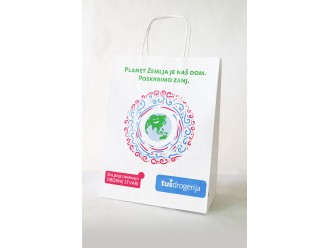 Za večje naklade tiska (od 5000kosov naprej) vam ponujamo tudi strojni potisk papirnatih vrečk, kjer najprej potiskamo rolo papirja, nato sestavimo vrečko. Pri tem flexotisku, imate več možnosti oblikovanja vrečke. Vse naše vrečke (rjave/bele/travnate- grass) so narejene iz 100g papirja in z zvitim ročajem, strojni tisk je na voljo le na povpraševanje .